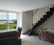 A l’étage, on trouve 3 chambres lits 2P et une salle d’eau comprenant des WC. 4 Chambres avec vue mer.